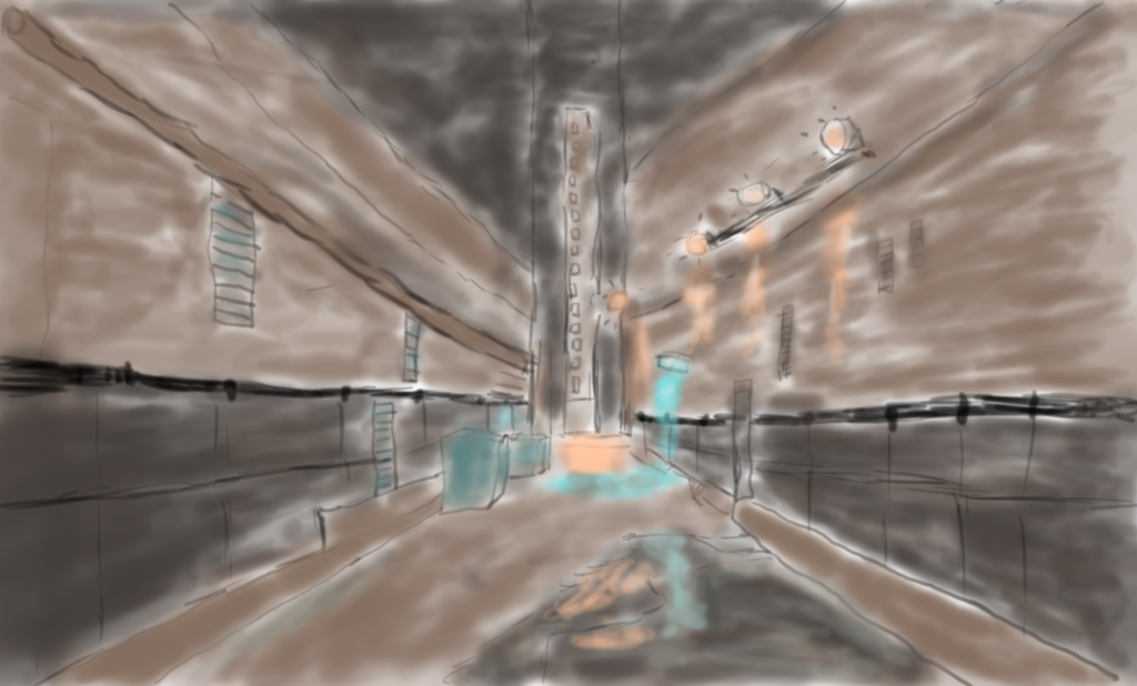 In order to visualise the scenario, I have created a rough concept drawing using Adobe Photoshop and a Wacom tablet.