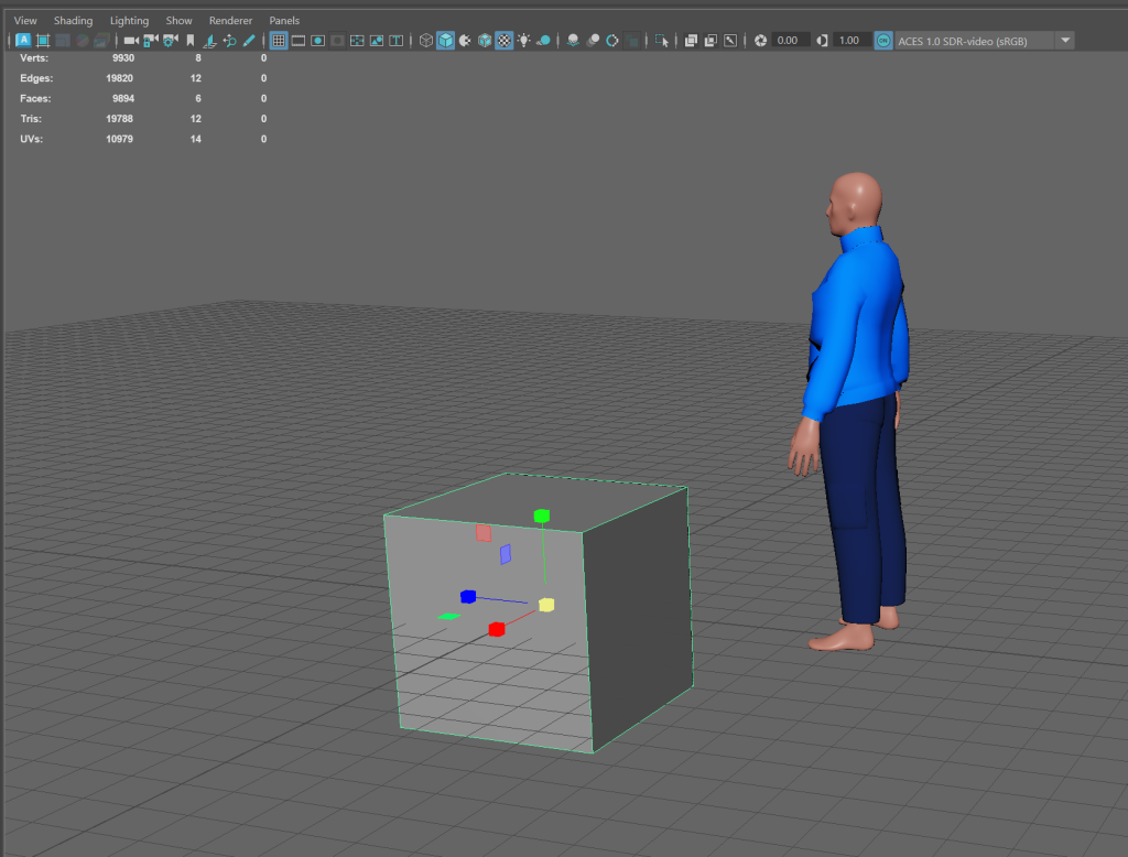 Using the tools in Maya, I then resize it to the size that I want using the person as a guide.
