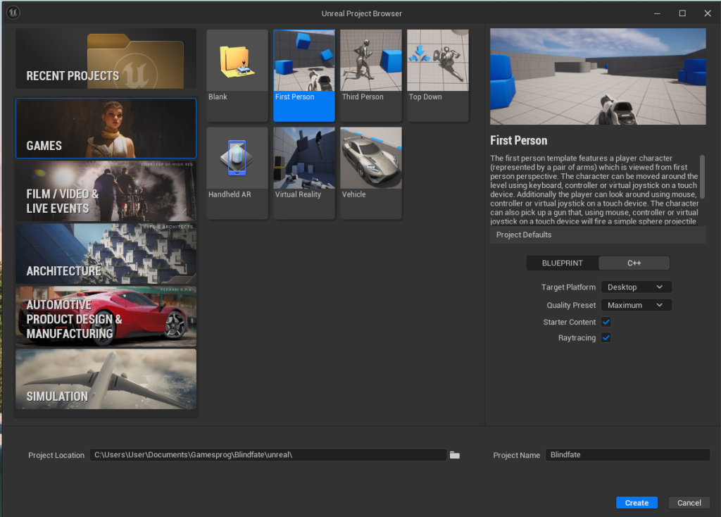 The Unreal Engine can be programmed for your game using either Blueprints or C++. Blueprints are a type of “visual coding” – you drag and drop elements and connect elements with each other. Luckily there are a lot of video tutorials online on how to do a specific thing in either C++ or Blueprints as well as how to use Unreal.