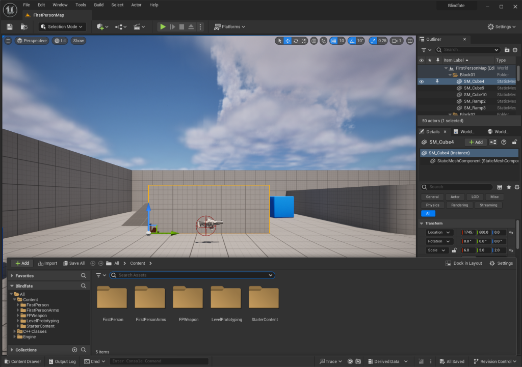 In the Content Drawer, I created a folder called Blindfate and then created all the folders for the levels underneath as follows: