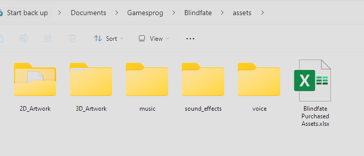 Also create a folder structure for your game assets. I have created one below.